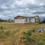 Pequeña cabaña de 55 m² con 1 living-comedor, 1 cocina, 2 dormitorios, 1 baño y alcantarillado. Ideal para utilizar como base para ampliar una casa.